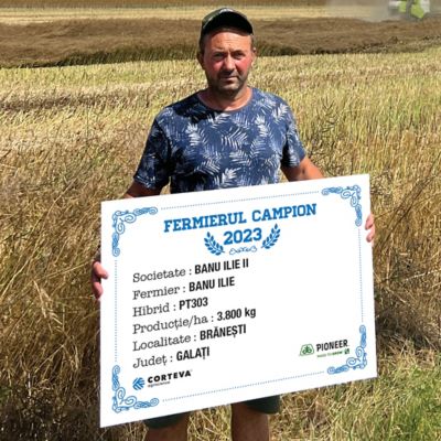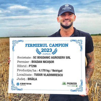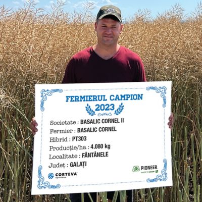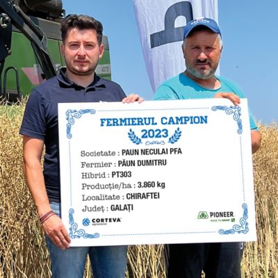 Primul fermier campion din această zonă este domnul Bogdan Nicușor care a ales hibridul PT298/Agile și a recoltat 4.170 kg/ha. Acesta își desfășoară activitatea în localitatea Tudor Vladimirescu, județul Brăila, lucrează 300 ha, iar rapiță a avut pe 50 ha, după orz. “Terenul a fost dezmiriștit, apoi am arat și l-am pregătit cu combinatorul. Am semănat la început de septembrie, atunci am și fertilizat cu sulfat de amoniu – 200 kg/ha. Toamna a fost fără tratamente, în schimb în primăvară am avut mai mult intervenții. Prima, în data de 10 martie, cu insecticidul Inazuma, aminoacizi și îngrășământ foliar pe bază de azot. Apoi, în jurul datei de 23 martie, am administrat azot - 125 kg/ha, după care, pe 7 aprilie, am administrat al doilea tratament cu fungicid, regulator de creștere și insecticid de contact. La final de aprilie am mai aplicat un insecticid sistemic și unul de contact, pot spune că a fost o intervenție esențială. Ultima intrare în cultură a fost cu îngrășământ, respectiv 125 kg/ha de azot la începutul lunii mai. Cultura a fost în neirigat, am avut noroc de ploi la momentul potrivit, iar producția a fost bună. Cât despre hibridul PT298, pot spune că am fost mulțumit, l-am ales și în această toamnă pentru 30 ha, iar pentru 15 ha am ales hibridul PT315”, a declarat fermierul campion.