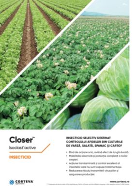 Insecticidul CLOSER™ pe bază de Isoclast™ active este omologat la doza de 0.2L/ha, atât la cartof, cât și la culturi precum: varza, salata, spanac, broccoli, conopida, varza de Bruxelles.