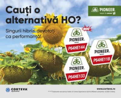 Compania Corteva pune la dispoziția fermierilor un portofoliu de 3 hibrizi HO Express®: P64HE118, P64HE133 și P64HE144, hibrizi ce au un conținut de acid oleic de peste 90% și vin cu un avantaj major din acest punct de vedere - minim 5% acid oleic peste hibrizii competitori.