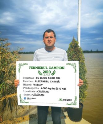 Domnul Georgian Corniță este următorul fermier campion din județul Călărași, acesta a cultivat hibridul P64LE99 pe 65 ha și a obținut 4.355 kg/ha. “Lucrez 700 ha, iar în această campanie floarea-soarelui am semănat pe 200 ha. În funcție de solă, planta premergătoare a fost porumb sau grâu. Acolo unde am avut hibridul P64LE99, planta premergătoare a fost porumbul, așa că lucrarea de bază a solului a fost arătura. Apoi am pregătit terenul cu discul și combinatorul, după aceea, în prima parte a lunii aprilie, am semănat 68.000 b.g/ha și am administrat îngrășământ complex 11.52.0 – 200 kg/ha. Cultura a fost prășită de două ori, iar la prima prașilă am mai dat 80 kg/ha de azot. Am erbicidat cu Express® 50 SG și cu antigramineic, iar în stadiul de 4-6 frunze am aplicat fungicidul Tanos® 50 WG. Campania de recoltat a avut loc la finalul lunii august, a fost chiar un an foarte bun și sunt mulțumit de producție”, a specificat domnul Corniță. Acesta a mai adăugat faptul că în următoarea campanie intenționează să semene floarea-soarelui pe 150 ha și va rămâne fidel hibridului P64LE99, pe care îi cultivă de mai mulți ani și care îi oferă producții constante.