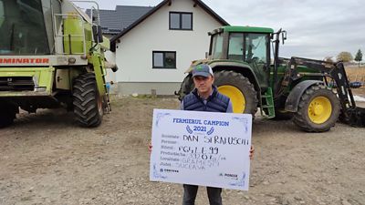 Domnul Nicu Cepreaga este fermier în județul Neamț, localitatea Moldoveni, lucrează 300 ha și ales anul trecut hibridul Pioneer® P64HE144, care i-a oferit o producție de 4.200 kg/ha. “Anul trecut am avut 50 ha de floarea-soarelui, semănat după cultura de porumb. În primăvară am fertilizat prin incorporare cu 250 kg/ha de îngrășământ complex triplu 15, mai apoi, am aplicat la semănat nitrocalcar – 200 kg/ha. După semănat am erbicidat, iar în faza de 10 frunze am aplicat un tratament. Am recoltat în luna septembrie și pot spune că nu am avut probleme în cultură, am obținut o producție bună, de aceea aleg în continuare acest hibrid”, a precizat fermierul campion.