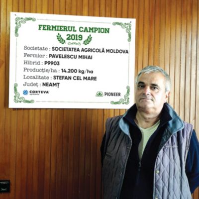 Primul fermier campion din această zonă a țării este domnul Mihai Pavelescu. Acesta lucrează 500 ha în județul Neamț, iar cel mai performant hibrid din ferma sa a fost P9903, care i-a asigurat producția de 14.200 kg/ha. „Porumb am avut în acest an pe 110 ha și a fost semănat după păioase. Astfel că, am scarificat și arat, iar pe arătură aplic de obicei superfosfat, 150 kg/ha. La pregătirea patului germinativ aplic 200 kg/ha îngrășământ 15.15.15, la semănat aplic 100 kg/ha uree NG. Am semănat la jumătatea lunii aprilie 79.000 b.g/ha. Cultura a primit un singur erbicid preemergent, un fungicid, iar atunci când am prășit, în stadiul de 8 frunze, am mai dat 200 kg/ha nitrocalcar. Am recoltat în luna septembrie, iar anul viitor voi semăna porumb pe aproximativ 130 ha și am ales hibrizii P9241, dar și un nou hibrid din portofoliul Pioneer®, deci voi avea în total 80 ha cu hibrizi Pioneer®”, a precizat fermierul campion.